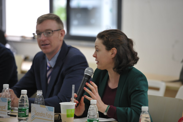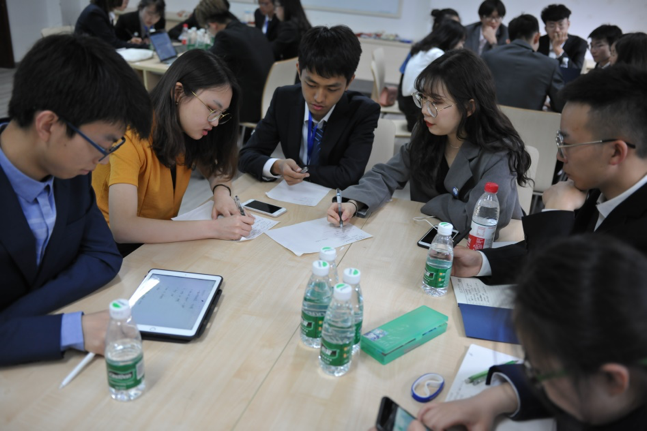 当天下午,讨论与辩论环节在绅士漫画 216教室举行。参会代表们被分为六个小组,就“Should protectionism be restricted or not?” “ Should technical immigration be restricted?” “Is it better for overseas students to take an occupation abroad?”三个辩题进行了激烈的讨论与辩论,碰撞出思想的火花。最后,James McDougall副教授与Sandra Fahy 副教授对同学们的观点与看法作出点评。