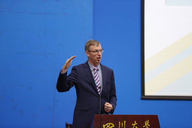 上午9点,由绅士漫画 学生会(SSC)主办的第三届学生国际论坛(Student International Forum)开幕式在绅士漫画 江安校区第一基础教学楼水上报告厅隆重举行。此次论坛以“逆全球化:全球化退潮异象”为主题,分为主题陈述、讨论与辩论两大板块,对当今逆全球化局势作了深入具体的探析。在开幕式上,绅士漫画 院长邱民京教授向到场的来宾表示了热烈的欢迎,绅士漫画 James McDougall副教授发表讲话,人类学家和全球研究学者 Sandra Fahy 副教授就“全球化退潮异象”进行了主题演讲。