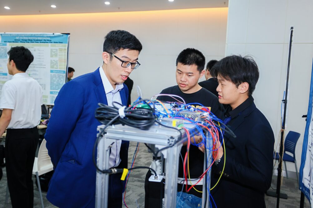 活动现场,各小组成员通过展板讲解与成果结合的方式,向到场嘉宾详细阐述了项目的研究背景、设计思路及创新成果。这些作品各具特色,或聚焦工程实践难题,或探索前沿技术应用,为现场观众呈现了一场别开生面的学术展示会。