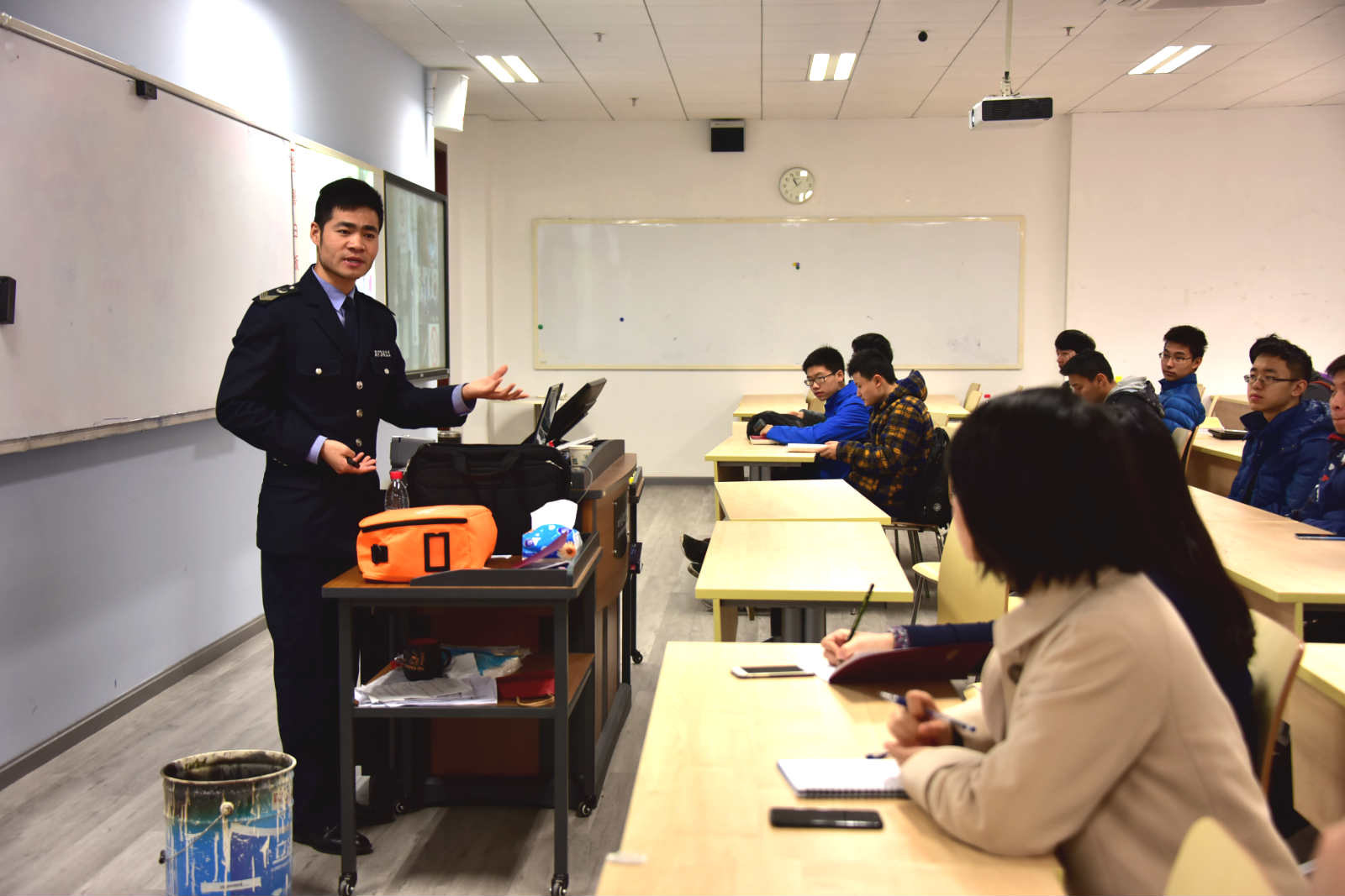 邀请卫民安四川消防安全教育中心的周警官为同学们上了生动的一课。