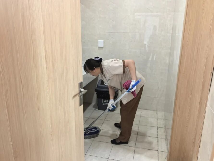 To experience the daily work of cleaning workers, volunteers shuttled between classrooms, restrooms, and other areas, assisting cleaning workers in tasks such as floor sweeping and table wiping. During breaks in operations, the cleaning workers explained in detail the cleaning points of different areas while also inquiring about the volunteers’ academic pressure and extracurricular schedules, reminding them to pay attention to relaxation.