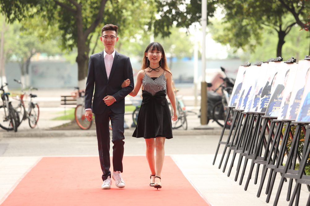同学们和受邀来宾盛装出席颁奖典礼,在红毯通道上合影留念。SCUPI为同学们带来了着装礼仪的第一课。