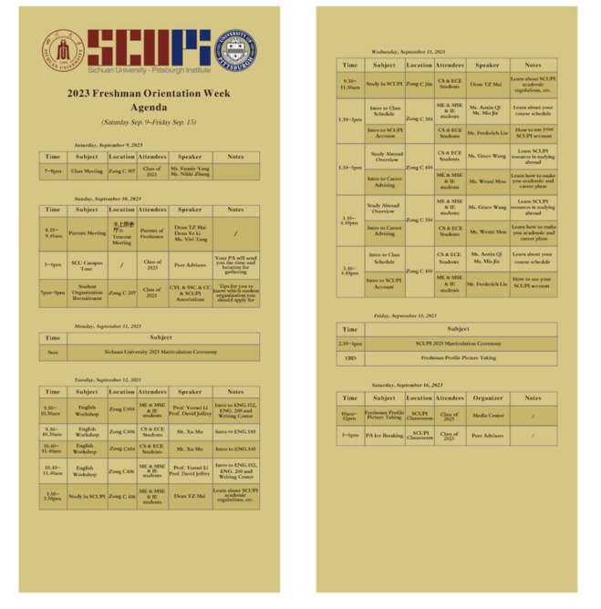 Excitement is building for the upcoming 2023 Orientation Week, dedicated to welcoming the Class of 2027 to Sichuan University-Pittsburgh Institute.