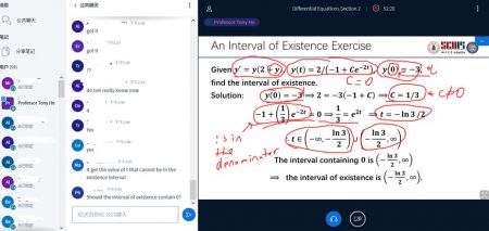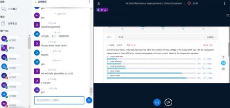While lecture time (live broadcast) is reduced from 90 min to ~30 min, instructor-student interactions are greatly boosted, since I can ask questions via private messages to many students simultaneously. The students’ feedback so far concentrates on the flexibility and efficiency of this new way of teaching, as they claimed that comparing to normal lectures, they were able to replay the class material and do reference checking at any time in need. A concern, for now, is a possible wider distribution of learning effectiveness from the students, which will be addressed via upcoming tests.