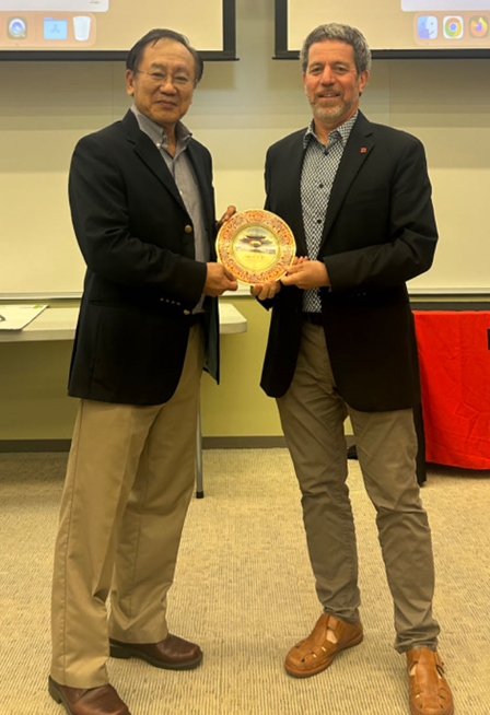 Prof. Minking Chyu, Dean of SCUPI, also gave a speech, thanking the team responsible for the Summer Program at Rutgers University and exchanging gifts with the Rutgers University program directors as a symbol of the commitment to deepening academic cooperation and nurturing talented individuals together.