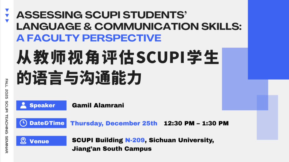 Venue: SCUPI Building N-209, Sichuan University, Jiang’an South Campus