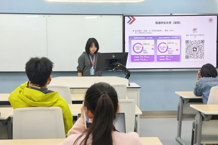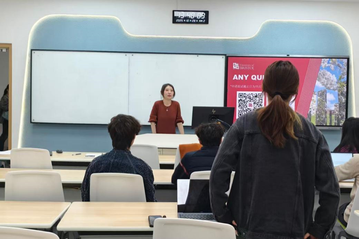 Ms. Li Qian, Chinese Representative for the University of Bristol’s 3+1 Integrated Bachelor’s-Master’s Program, first overviewed the university’s location, international reputation, notable alumni, and faculty and laboratory resources. She then detailed the program’s specific features and strengths. The program facilitates efficient completion of both degrees within four years through mechanisms like conditional early admission, credit transfer, and a one-year master’s curriculum, supplemented by scholarship support. Additionally, the university’s extensive resources for postgraduate studies and comprehensive career services lay a solid foundation for students’ future academic pursuits or employment in renowned companies.