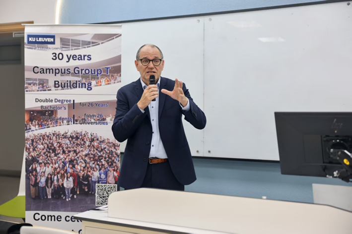 Mr. Bai Weien, International Office Director and Mr. Li Wei, International Alumni and Cultural Affairs Supervisor of Group T Campus, KU Leuven, visited our institute. Mr. Polet acted as the keynote speaker for the admissions presentation. He started with a general introduction covering the university’s location, language environment, and overall strengths. He then focused on the international characteristics of the Group T Campus, which offers a range of English-taught engineering programs at the bachelor’s, master’s, and doctoral levels, alongside various joint cultivation programs designed to meet diverse student needs. Moreover, the study costs are relatively cost-effective, and strong industry-academia collaboration provides practical experience, enhancing graduates’ competitiveness for careers in multinational corporations or further academic pursuits. Finally, Mr. Polet concluded the presentation.