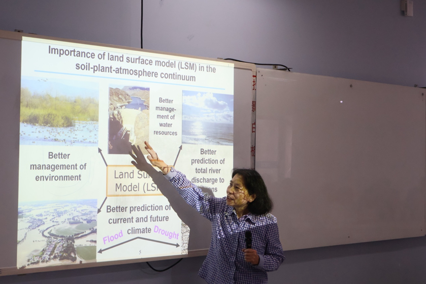 Professor Liang first introduced the concept and importance of Land Surface Models (LSM). She pointed out that LSMs are crucial in simulating surface processes in climate models and play a significant role in environmental protection, water resource management, hydrological prediction, and weather forecasting. However, LSMs face challenges in terms of model complexity. Professor Liang introduced the improved models and demonstrated their significant effects.