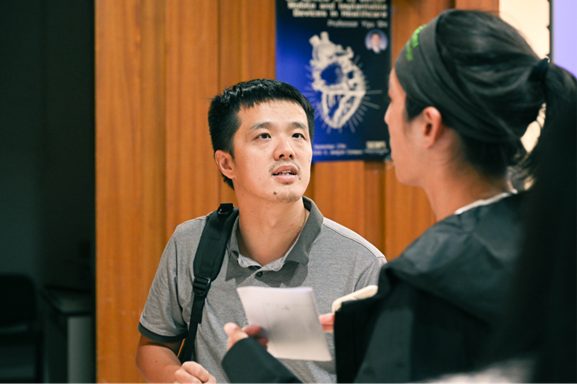 Dr. Yiyu Shi explaining concepts to the audience