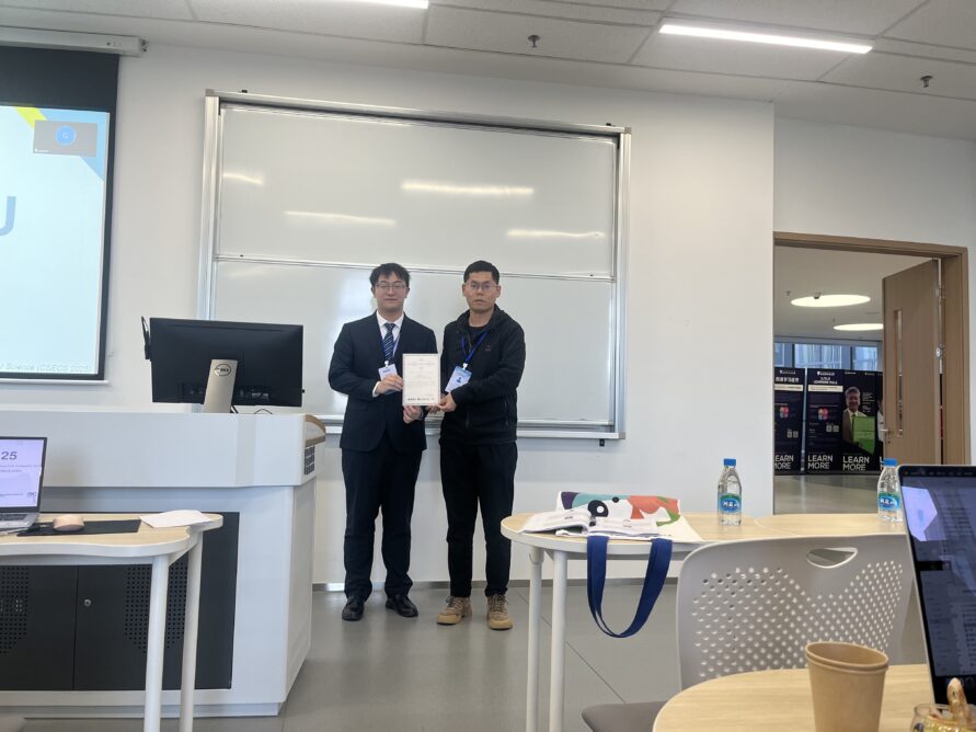 During the conference, Mingyang Wu, as the presenter, elaborated on the research findings of the “AI-Driven Integration of Educational Resources and Intelligent Questions and Answers System,” demonstrating the innovative applications of artificial intelligence technology in education. He was honored with the Best Presenter Award for his outstanding presentation.