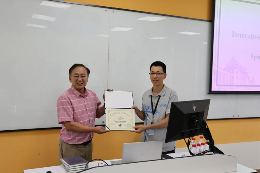 Intel big-data expert Yang Runxing returned for the second consecutive year to teach ECE and CS majors. Dr. Minking Chyu, Dean of SCUPI opened the day and presented Yang with an official Instructor Certificate, thanking both him and Intel for their steadfast support of SCUPI education.